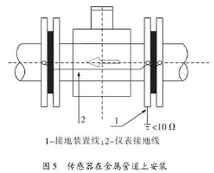 (1)傳感器在金屬管道上安裝(金屬管道內壁沒有絕緣層),如圖5。
