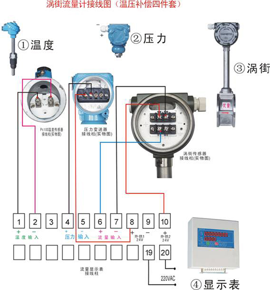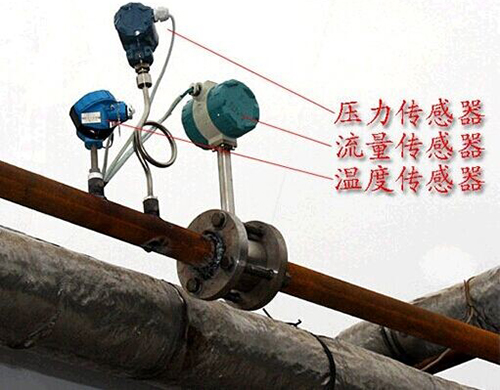 2、溫度補償一體型渦街流量計還帶有溫度傳感器,可以直接測量出飽和蒸汽的溫度并計算出壓力,從而顯示飽和蒸汽的質量流量。