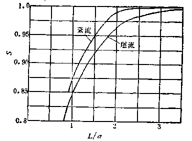 如果測量管是導電的,由于導電管壁的短路作用,磁場邊緣效應就會更加明顯,并導致電極上感生電動勢損失的增加.隨著管壁導電率和壁厚的變化,這種影響也將隨之改變.若以 表示管壁厚度,K表示管壁電導率,d和 仍然分別表示測量管內半徑和被測液體電導率,則可用L/d和a= 來表示不同情況下邊緣效應的影響程度,如圖3—36所示.