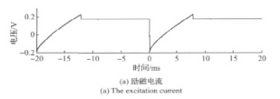 實驗結果表明,高壓源向低壓源切換后,三端穩壓器的工作特性致使的電流波動和低壓源供電情況下的恒流控制,會大幅延長勵磁電流的穩態響應時間。圖8所示勵磁電流約在17ms左右進入穩態,圖9所示勵磁電流的穩態響應時間約為12ms。這表明,在采用三端穩壓器搭建恒流控制電路的情況下,電流旁路電路能有效克服三端穩壓器工作特性的影響,并能方便的實現電流超調,加快勵磁電流的響應速度。