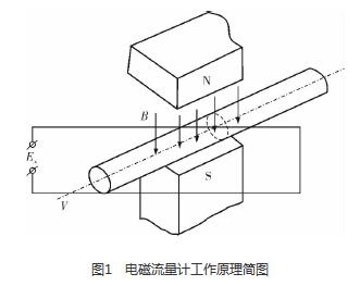 油田污水流量計廠家是利用法拉*電磁感應(yīng)定律設(shè)計的流量測量儀表,用于測量導(dǎo)電液體的體積流量。根據(jù)法拉*電磁感應(yīng)定律,當(dāng)導(dǎo)體切割磁力線運(yùn)動時,導(dǎo)體內(nèi)將產(chǎn)生感應(yīng)電動勢Ex(圖1),方向根據(jù)右手定則確定,感應(yīng)電動勢Ex的大小與磁場的磁感應(yīng)強(qiáng)度B、傳感器管道的內(nèi)徑D和流過導(dǎo)電液體的流速V成正比,B、D、V三者相互垂直,即Ex=BDV。