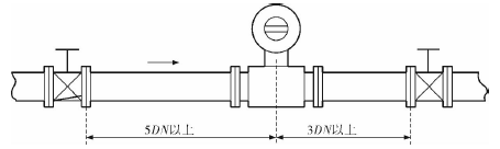 膠水管道流量表的安裝質量對其測量結果的影響較大,因此在安裝時需要注意幾個問題。*先,膠水管道流量表直管段的選擇在配管時一定要按照要求進行選擇,一般選擇流量計通徑與工藝管道通徑相同,即可滿足工程需要,而且安裝方便、壓力損失小,流量計直管段上游側的長度不少于5倍工藝管道直徑,下游側的長度不少于3倍工藝管道直徑(圖2)。但在流速太慢而又要求精度較高或需要變徑的應用場合,可選擇通徑小于工藝管道通徑的流量計,以提高測量精度,此時流量計上、下游必須加裝異徑管,且進口異徑管上游側應有長于10倍工藝管道直徑的直管段,下游側應有長于5倍工藝管道直徑的直管段(圖3)。