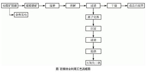 本項(xiàng)目為石煤綜合利用的項(xiàng)目。現(xiàn)有提釩工藝產(chǎn)生大量廢渣。其主要成分為二氧化硅,但其中夾帶有大量的釩資源,釩資源利用率低,同時,該廢渣中堿含量較高,如將廢渣隨意堆放,易造成環(huán)境污染。本項(xiàng)目*大特點(diǎn)在于利用現(xiàn)有提釩工藝中的提釩二次渣作為制備沉淀法白炭黑的主要原料,將廢渣中的硅資源得到充分利用。為企業(yè)創(chuàng)造了新的經(jīng)濟(jì)增長點(diǎn),同時,解決了現(xiàn)有提釩生產(chǎn)中造成的釩資源浪費(fèi)和環(huán)境污染問題,此外,該項(xiàng)目利用現(xiàn)有提釩生產(chǎn)線脫碳工序中產(chǎn)生的余熱作為加熱熱源,取代了傳統(tǒng)工藝以煙煤為主要燃料的方法,即對生產(chǎn)中產(chǎn)生的余熱得到了有效合理的利用,又進(jìn)一步降低了產(chǎn)生的燃料成本,達(dá)到了節(jié)能減排,資源綜合利用的目的,工藝流程框圖如下。