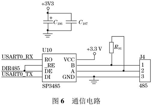 防腐型電磁流量計(jì)輸出的流量值可以通過外接的 TFTLCD 屏直接顯示,還可以通過預(yù)留的 RS485 通信接口將數(shù)據(jù)發(fā)送到上位機(jī)中。RS485 電路*大的優(yōu)點(diǎn)是 485 電平與 TTL 電平兼容,方便與 TTL 電路相連;抗共模干擾能力強(qiáng);數(shù)據(jù)傳輸速度快,高達(dá) 10 Mbps;通信距離遠(yuǎn),*大為 1.2 km。系統(tǒng)采用 SP3485 芯片進(jìn)行數(shù)據(jù)通信,SP3485 是一款低功耗芯片且符合RS485 協(xié)議的收發(fā)器,電路圖如圖 6 所示。