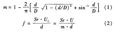 式中:m為漩渦發生體兩側弓形面積與管道橫截面面積之比;D為表體通徑,~;d為漩渦發生體迎面寬度,~;f為漩渦的發生頻率,Hz;U:為漩渦發生體兩側平均流速,耐s;sr為斯特勞哈爾數;U為被測介質來流的平均速度,耐s。管道內體積流量q。為: