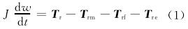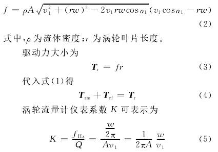 渦輪在轉(zhuǎn)動時所受的力矩大致可分:流體對渦輪的推動力矩Tr,機(jī)械摩擦力矩Trm,流體對渦輪產(chǎn)生的流動阻力矩Trf和電磁阻力矩Tre。渦輪運(yùn)動方程可以表示為