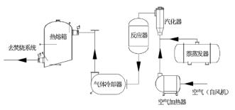 以原料萘為例。萘由原料儲罐經液萘泵加壓后進入萘蒸發器,液萘在萘蒸發器內由中壓蒸汽加熱汽化分離,經流量調節閥、流量計和氣萘切斷閥后進入汽化器;空氣經風機加壓后,經空氣加熱器加熱后進入汽化器,氣萘和空氣在汽化器內混合均勻后進入氧化反應器上部,經催化床層發生氧化反應生成苯酐和少量的副產物(以順酐、苯甲酸、萘醌、和鄰苯二甲酰亞胺為主);反應氣體經智能型渦街流量計冷卻后再進入切換冷凝器進行凝華捕集,少量未被捕集的有機物和不凝氣體經尾氣管路進入蓄熱焚燒裝置焚燒處理,焚燒后的尾氣達標排放。