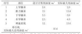 由表1可知,單臺機組運行所需總油量約為37.6m3,其中各軸承所需油量約為24m3,均超出設(shè)計計算總油量。機組運行所需總油量超出一個運行油桶的總?cè)莘e,至少需用2個油桶來盛放。為保證機組各軸承用油和調(diào)速系統(tǒng)用油的油品質(zhì)量,機組排油時將各軸承所用透平油(約為24m3)排至一個運行油桶中,將調(diào)速系統(tǒng)所用透平油(約為13.6m3)排至另一個運行油桶中,避免混合造成油質(zhì)化驗指標不滿足用油設(shè)備的要求。