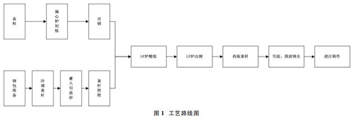 1.1 偏心爐+LF 爐雙聯(lián)冶煉工藝,鋼包冷調(diào)、熱裝防爆渦街流量計工藝路線圖簡介如圖 1。