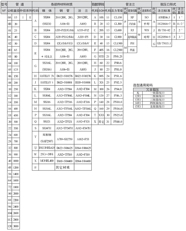 3.管道式SO、WN法蘭連接(VS、VW)選型