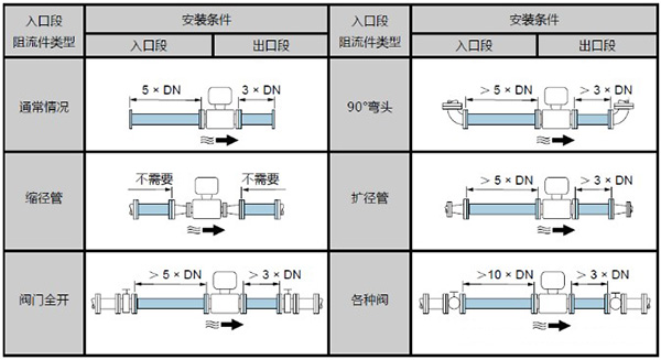 管路必須完全充滿液體。保證管路始終充滿液體至關重要,否則流量顯示會受到影響,而且還會出現測量錯誤。管路結構的設計必須要保證測流管始終充滿流體。當流體有分流或含有固體顆粒沉淀物時,建議使用垂直安裝。但采用垂直安裝時,要遵循流體從下到上的走向,以保證管路充滿流體。