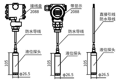 投入式液位計是一種測量液位的壓力傳感器,基于所測液體靜壓與該液體的高度成比例的原理,采用高純度進口單晶硅敏感元件或陶瓷電容壓力敏感傳感器,將靜壓轉換為電信號,再經過溫度補償和線性修正,轉化成標準電信號,一般適用于石油化工、冶金、電力、制藥、供排水、環保等系統和行業的各種介質的液位測量。