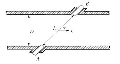 制藥廠污水流量計(jì)為獨(dú)立測(cè)量設(shè)備,由多個(gè)位于管線內(nèi)壁的超聲傳感器組成。傳感器由緊固機(jī)械裝置插入管道中,超聲脈沖被 2 個(gè)傳感器交替地發(fā)射和接收。由于電磁在逆流和順流情況下的傳輸時(shí)間 tu 和 t d 不同,通過時(shí)差法可以計(jì)算得到流體流速,工作原理如圖 1 所示。制藥廠污水流量計(jì)還可以配置成雙向計(jì)量模式,精度不變。